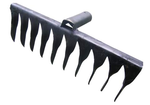 Грабли витые 10 зубьев. Рабочая часть и тулейка инструмента изготовлены из конструкционной углеродистой стали марки 08пс - ГОСТ 1050, ДСТУ 7809 с защитным покрытием из порошковой эмали, которая надежно защищает изделие от коррозии. Грабли - это сельскохозяйственный инструмент, предназначенный для сбора листвы, скошенной травы, мусора и разрыхления перекопанной земли. Витые грабли имеют изогнутую форму зубьев, что помогает им отлично разравнивать верхнюю часть перекопанной почвы, песок. Так же данная форма зубьев, благодаря своей изогнутости, обеспечивает отличный сбор мелких камней, комков глины, срезаны веток и сучков.