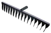 Грабли витые 14 зубьев. Рабочая часть и тулейка инструмента изготовлены из конструкционной углеродистой стали марки 08пс - ГОСТ 1050, ДСТУ 7809 с защитным покрытием из порошковой эмали, которая надежно защищает изделие от коррозии. Грабли - сельскохозяйственный инструмент предназначенный для сбора листвы, скошенной травы, мусора и разрыхления перекопанной земли. Витые грабли имеют изогнутую форму зубьев, что помогает им отлично разравнивать верхнюю часть перекопанной почвы, песок. Так же данная форма зубьев, благодаря своей изогнутости, обеспечивает отличный сбор мелких камней, комков глины, срезаных веток и сучков.