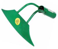 Тяпка изготовлена из высококачественной стали с термообработкой, имеет характерную особенность самозатачиваться в процессе работы. Режущая часть тяпки имеет твердый слой (закален на глубину 0,1 мм до твердости HRC 63 единицы) и мягкий слой, который стачивается во время работы, позволяя тяпке оставаться всегда острой. Дугообразная форма полотна хорошо подходит для формирования в грунте ямок и широких борозд под семена. Применяется для рыхления грунта, окучивания, прополки сорняков.