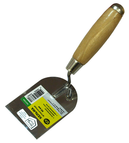 Полотно из нержавеющей стали, зеркально отполированное, обеспечит надежность конструкции, лучшую защиту от коррозии, а удобная деревянная лакированная рукоять обеспечит комфортную работу при нанесении и распределении штукатурных смесей и клеевых составов. На конце деревянной рукоятки расположен стальной боек.