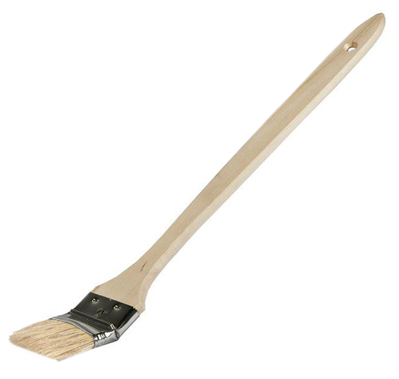 Радиаторная кисть "Стандарт" предназначена для малярных работ в труднодоступных местах, окраски радиаторов и мест соединения труб. Кисть имеет длинную ручку, слегка изогнутую под углом по отношению к красящему краю, что обеспечивает легкий доступ кисти во все углы при окрашивании конструкций сложной формы.