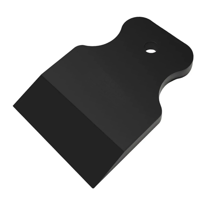 Шпатель изготовлен из черной резины. Оснащен отверстием для подвешивания. Маленький размер инструмента, прочность позволяют с точностью наносить материал. Черный резиновый шпатель обладает умеренной жесткостью, им удобно уплотнять составы, не образуя нежелательных пустот. Применяют для проведения финишных работ по нанесению шпаклевочного слоя на поверхности, затирки межплиточных швов.