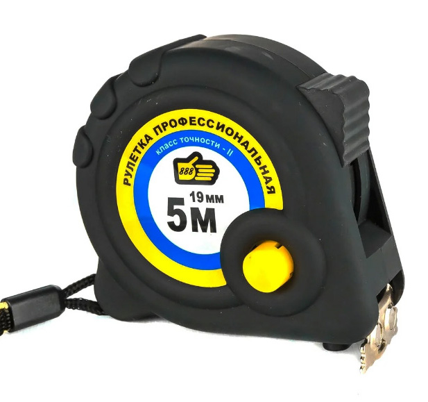 Корпус инструмента выполнен из ударопрочного пластика с прорезиненной поверхностью, которая обеспечивает надежный хват и удержание инструмента в руках. Утолщенное стальное полотно с лаковым покрытием устойчиво к заломам и деформации. . Автоматический механизм возврата мерной ленты. Двойная фиксация полотна защищает ленту от случайного сматывания. Рулетка используется для проведения измерений в процессе строительных и ремонтных работ.