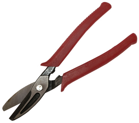 Ножницы по металлу изготовлены из инструментальной легированной стали, которая закаленная до твердости 58 HRC с оксидированным покрытием, благодаря чему обладают долгим сроком службы. Инструмент состоит из удлиненной рабочей части (заостренных губок) и декоративных пластиковых ручек. Узел крепления ножниц выполнен в виде болтового соединения с самотормозящей гайкой с нейлоновым кольцом, что обеспечивает легкий и плавный ход. Используются при резке листового металла.