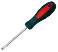 Шлицевая отвертка SL 5,0 *75 CrV состоит из двух частей: металлического стержня с намагниченным наконечником в форме прямого шлица и двухкомпонентной резиново-пластиковой ручки. Прочный стальной хромированный стержень выдерживает большую нагрузку и справляется даже с прочно засевшими винтами. Инструмент легко ложится в ладонь, что позволяет работать с максимальным усилием. Преимущество - специальный упор для большого пальца, который обеспечивает также возможность давления на винт. Отверстие на ручке для удобного хранения инструмента. Отвертка служит для работы с крепежом различной сложности.