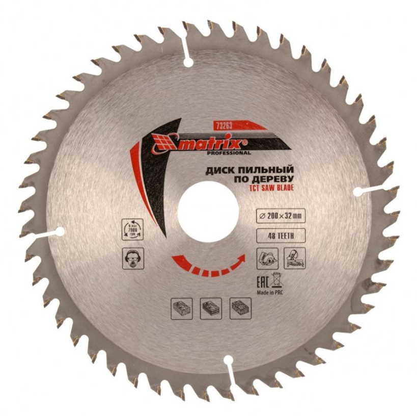 Корпус диска шлифованный, изготовлен из стали 65Г и термонормализован. Зубья из ВК8 припаяны высокопрочным припоем. Алмазная заточка с выхаживанием значительно увеличивает срок службы инструмента. Дополнительный боковой разворот передней поверхности зубьев позволяет производить более качественное и чистое пиление. Диски предназначены для продольного и поперечного распила древесины. В комплект входит переходное кольцо 32/30 для возможности самостоятельного изменения посадочного диаметра при необходимости.