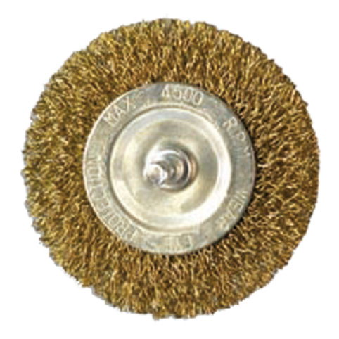 Корпус щетки (D-75 mm) выполнен из стали с оцинкованным покрытием. Щетина из крученой стальной омедненной проволоки диаметром 3,0 мм. Диаметр шпильки 6,0 мм устанавливается в патрон электродрели, поддерживающей скорость 4500 об/мин. Благодаря плоской форме щетка идеально подходит для очистки труднодоступных мест, пазов, изгибов, внутренних углов. Латунированное покрытие щетины и цинковое - корпуса обеспечивают защиту щетки от коррозии. Щетка применяется для щадящей очистки поверхностей от ржавчины, грязи, удаления лакокрасочных покрытий, получения заданной шероховатости.