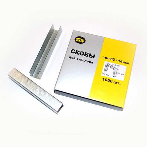 П-образные стальные скобы, тип 53 размером 10 х 10 мм, заправляются в мебельные степлеры. Подходят для закрепления древесины, фанеры, ДСП, оргалита, картона и других материалов. Пригодятся в процессе ремонтных и облицовочных работ, а также для обивки мебели.