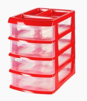 Органайзер, выполненный в виде небольшого комода из прозрачного пластика, что позволяет видеть содержимое. Содержит четыре выдвижных секции с удобным захватом (ручкой). Подходит для хранения швейных принадлежностей, рыболовных снастей, мелких деталей и других бытовых мелочей.
