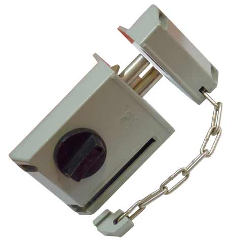 Накладной замок ЗНД-1А-Кс цепочкой. Изнутри открывается ручкой с дисковым секретным механизмом и ответной частью Конструктивная часть устройства представляет собой отточенную до идеала типовую схему, благодаря чему замок отличается высочайшей степенью надёжности. Засов из двух стальных ригелей круглого сечения 11мм. Ключевое отверстие удалено на 60 мм торца. Вылет ригеля 22мм. Автоматически запирает дверь при захлопывании. В комплекте 5 ключей.