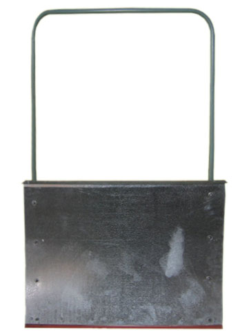 Рабочая часть инструмента размером (750х600 мм) выполнена из высококачественной стали повышенной прочности, толщиной 0,8 мм, покрытие слоем цинка оберегает инструмент от коррозии. Торцевую часть движка защищает стальная планка толщиной 1,5 мм, высотой 2,5 мм, на заклепках. Движок оснащен стальной П-образной рукояткой, которая крепится к полотну болтами.